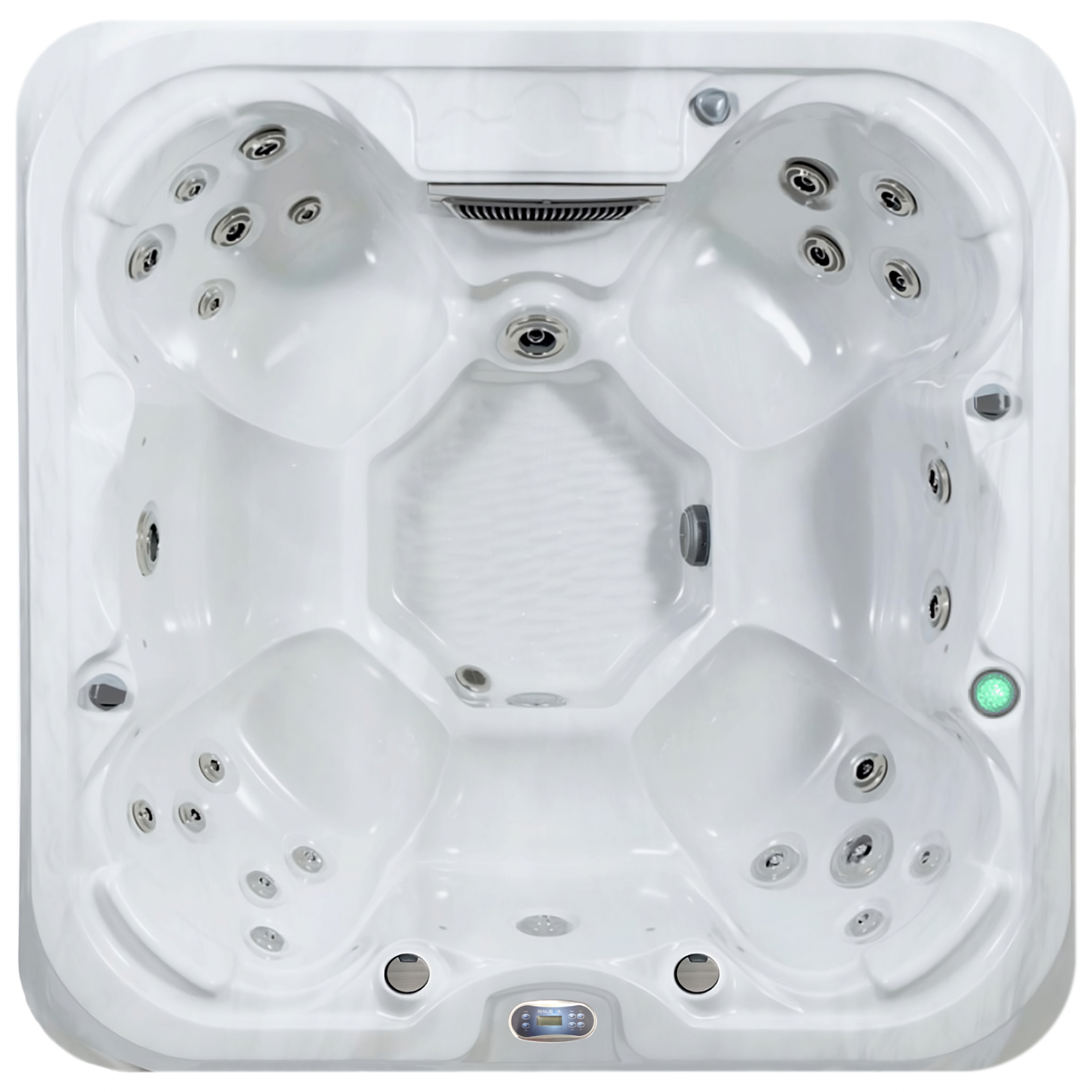 Size: 2000 x 2000 x 800mm Power Supply: 13 / 20amp 2kw heater Water Capacity: 1200L Shell: USA Aristech acrylic Seats: 7 HSG282 5* SEAT Pumps: 1 x 3HP Circulation: 1 x 0.35HP Ozonator: 1 x 50mg Air control valve: 2 Pressure Release Valve: 1 Filters: 2 Insulation: All 4 sides Super R10 Base: Solid ABS and insulation R10 Top spa cover: Number locking Jets: Total 26 Rotary jets: 14 Directional hydro jets: 12 Circulation jets: 1